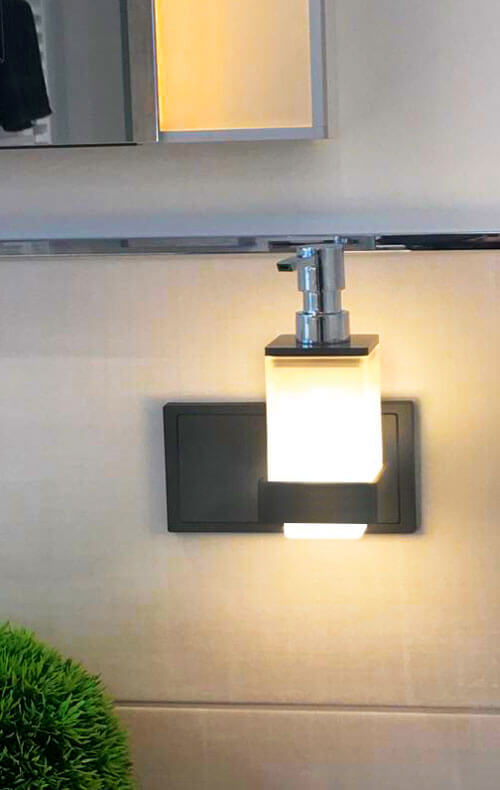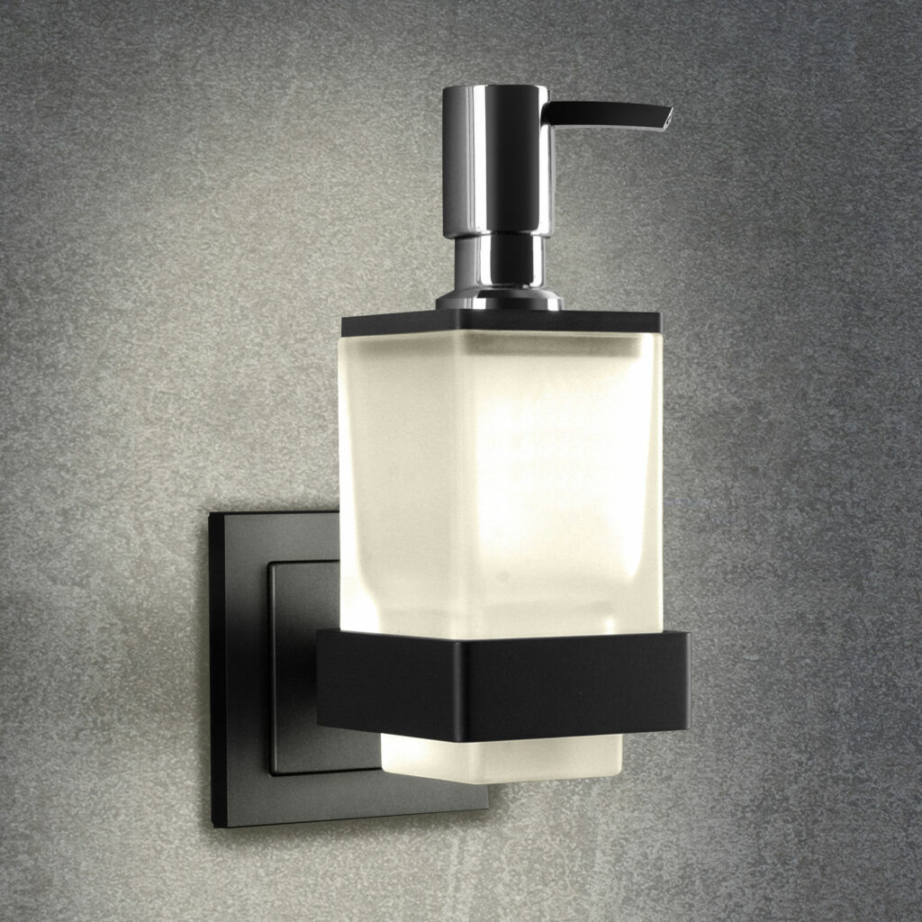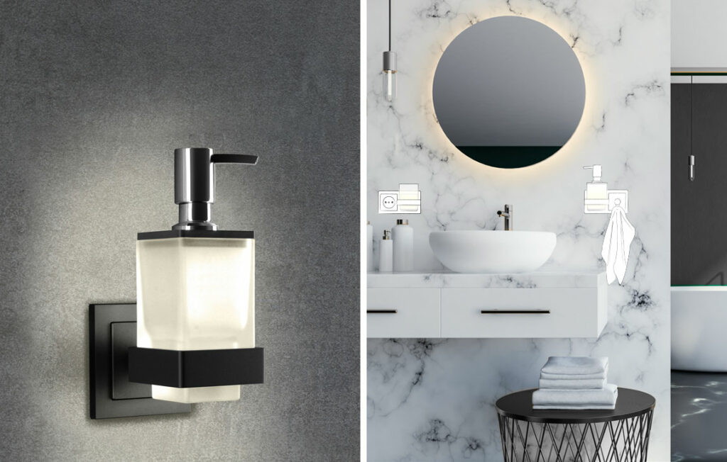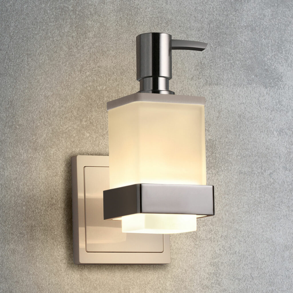 Das Bad gilt heute als wichtiges Kriterium eines gelungenen Wohndesigns: in privaten Räumen ebenso wie in der Objekteinrichtung, z. B. im Hotel. Mit dem qles Badhalter Lotionspender fügen Sie dieses praktische Accessoire symbiotisch in Ihr Designkonzept ein. Dieser korrespondiert in der Linienführung hervorragend mit dem Badhalter Wasserglas und der qles Wandlampe. Besonders reizvoll ist die beleuchtete Ausführung der Halterung – sie sorgt für einen echten Wow-Effekt im Bad.