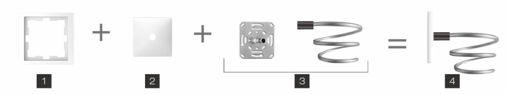 1 Merten Rahmenprogramm D-Life oder System M, 2 qles Abdeckplatten Flex-Base in den Farben der Merten D-Life und System M Rahmenprogramme, 3 qles Wandlampe in den Farben der Merten D-Life und System M Rahmenprogramme und qles Farben, 4 Individuelle Gestaltung: Verbindung von Funktion & Design