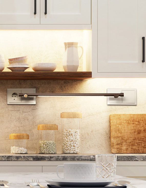 In der Küche strukturieren Sie so den Arbeitsplatz, leuchten ihn aus und verleihen ihm Tiefe. Bei der Fensterdekoration entstehen durch die beleuchteten Gardinenstangen faszinierende Möglichkeiten: innen entsteht eine heimelige Atmosphäre, nach außen heißt das Zuhause Gäste herzlich willkommen.