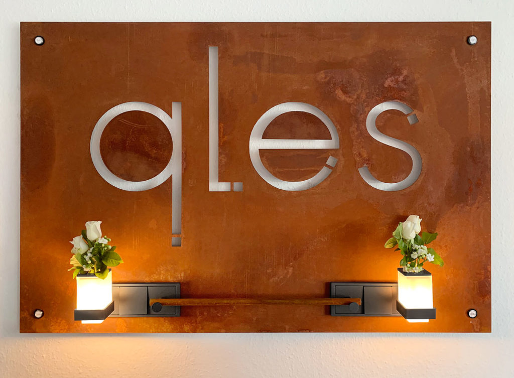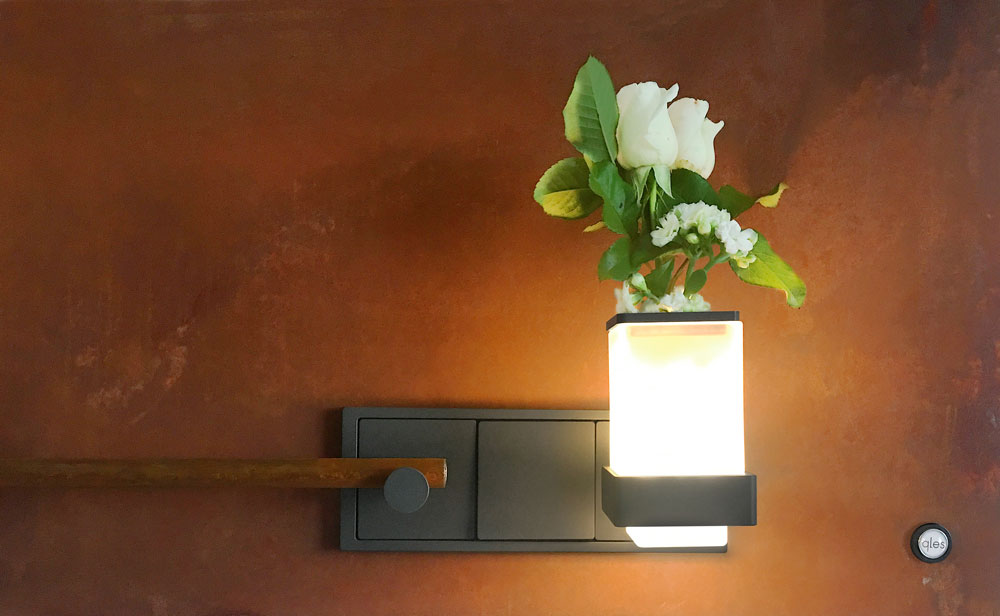 1 Merten Rahmenprogramm D-Life oder System M, 2 qles Abdeckplatten Flex-Base in den Farben der Merten D-Life und System M Rahmenprogramme, 3 qles Wandlampe in den Farben der Merten D-Life und System M Rahmenprogramme und qles Farben, 4 Individuelle Gestaltung: Verbindung von Funktion & Design