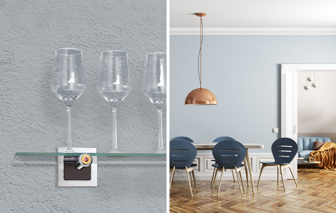 Ob Lounge-Charakter für das eigene Zuhause oder trendiges Flair im Objektbereich, z. B. hinter der Bar: Licht prägt Räume. Die dimmbaren warmweißen LEDs oder RGB-fähigen qles Regalhalterungen lassen Ihnen viel Gestaltungsfreiheit. Durch die Montage auf Schalterdosen erweist sich die Planung gleichzeitig als ausgesprochen einfach.