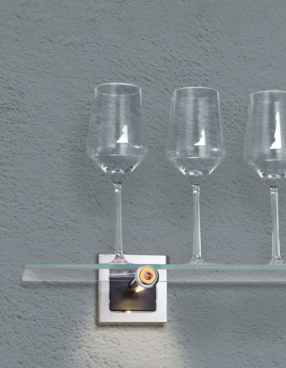 Elegante Gläser, feine Karaffen und ausgewählte Dekorationen verdienen einen Ehrenplatz. Lassen Sie sie erstrahlen mit dem beleuchteten qles Regalhalter. In Kombination mit einem Glasregalboden bis 120 mm Tiefe ergeben sich besonders schöne Effekte. Die Qualitäts-LEDs in dem qles Regalhalter lassen sich nach Wunsch justieren. Innerhalb eines Regals können Sie so die Böden ganz unterschiedlich in Szene setzen.
